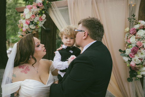 The florals were again done by the bride's mother and were spectacular! She could start her own floral business, but she might be done after two weddings. Children running all over the place, living their best lives under the redwoods, getting ready, first look with dad, happy tears, ceremony with a couple of ladies delivering bottles of shots to the crowd. Portraits, cocktail hour, first dances and a BBQ dinner from Hazy BBQ. Toasts, cake cutting, and a great dance party inside to end the evening. Enjoyed every moment with everyone. Looking forward to doing quite a few more this year at Deer Park Villa.