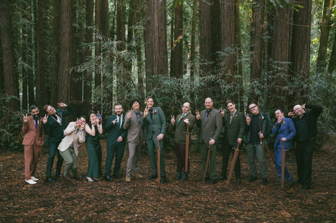 We started at The Outdoor Art Club in Mill Valley for getting ready and then moved to the Mill Valley Inn just down the road for the second getting ready portion. Guys received swords as their wedding gift, which were handy to open beers. First look and a gift reveal of a painting of the couple that they both adored. An egret, a stroll to Old Mill Park for some portraits under the redwoods, more swords, and then off to ceremony at The Outdoor Art Club.