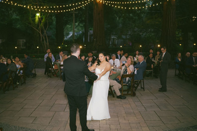 Grand entrance of bubble and money guns by the wedding party. Delicious dinner by the one and only Il Davide. Toasts, cake cutting, outfit change and a first dance, all leading into open dancing inside. All in all a great day with a sweet couple and their family and friends.